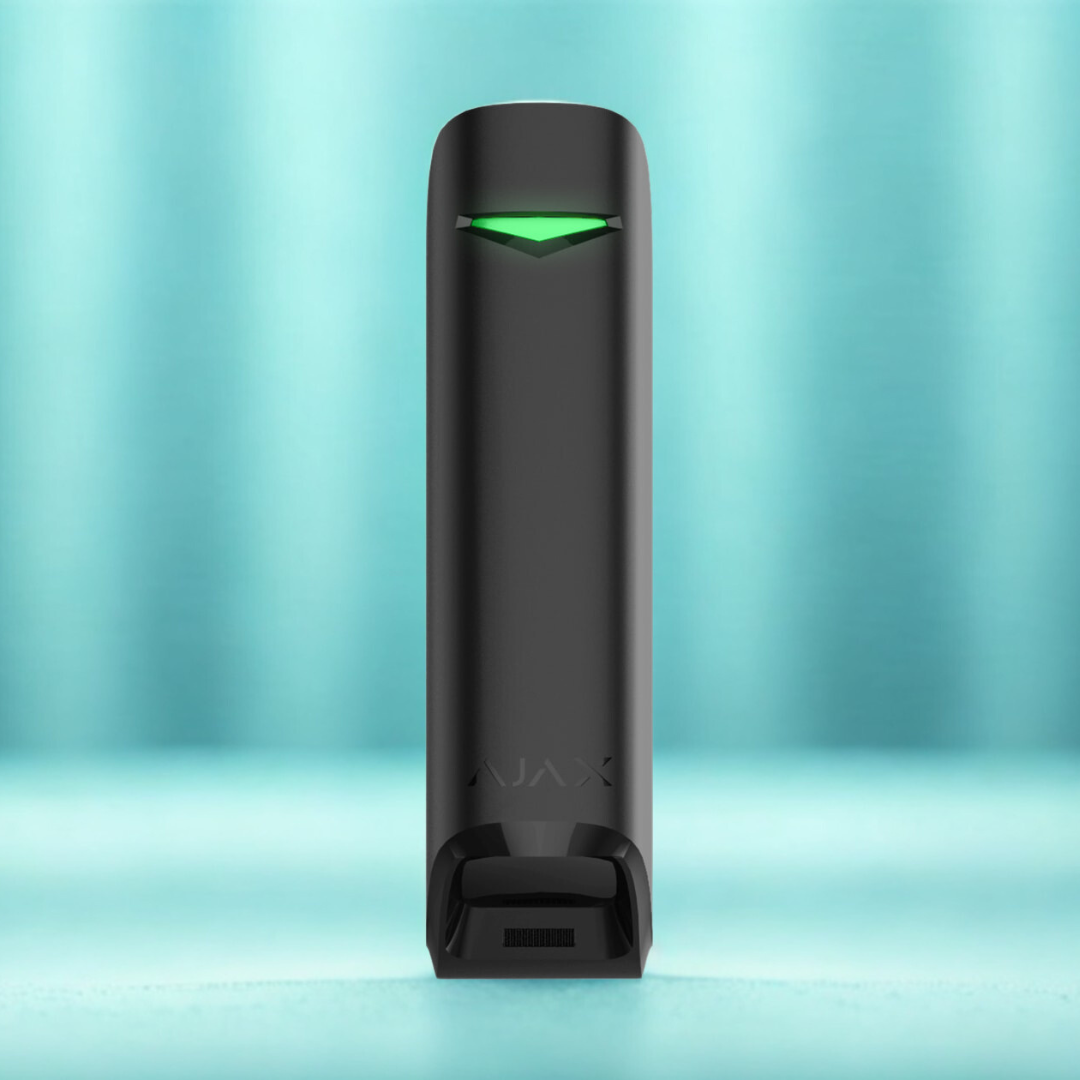 The AJAX MotionProtect Curtain is a wireless indoor curtain-type motion detector that protects windows, doors, and narrow zones.